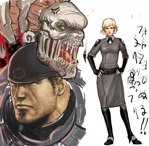 妹とお絵描きチャットでギアーズ・オブ・ウォーのキャラクターたち。