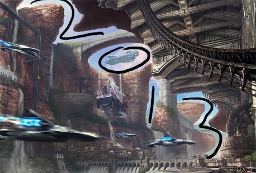 ほとんど写真の加工で色んな建物を切り取っては配置してコントラストいじくったり、