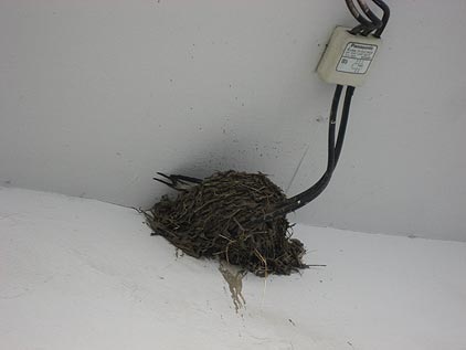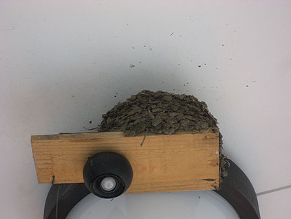 前の奴らが居なくなった後すぐ別のツバメが来て、板を綺麗にした次の日に巣を作り始めた。