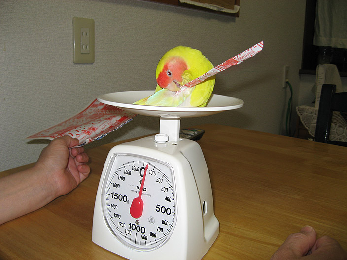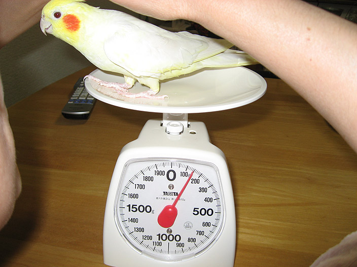 体重測定。前に比べてドッシリしてきたと思ったら150gだと!?